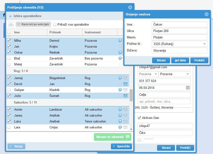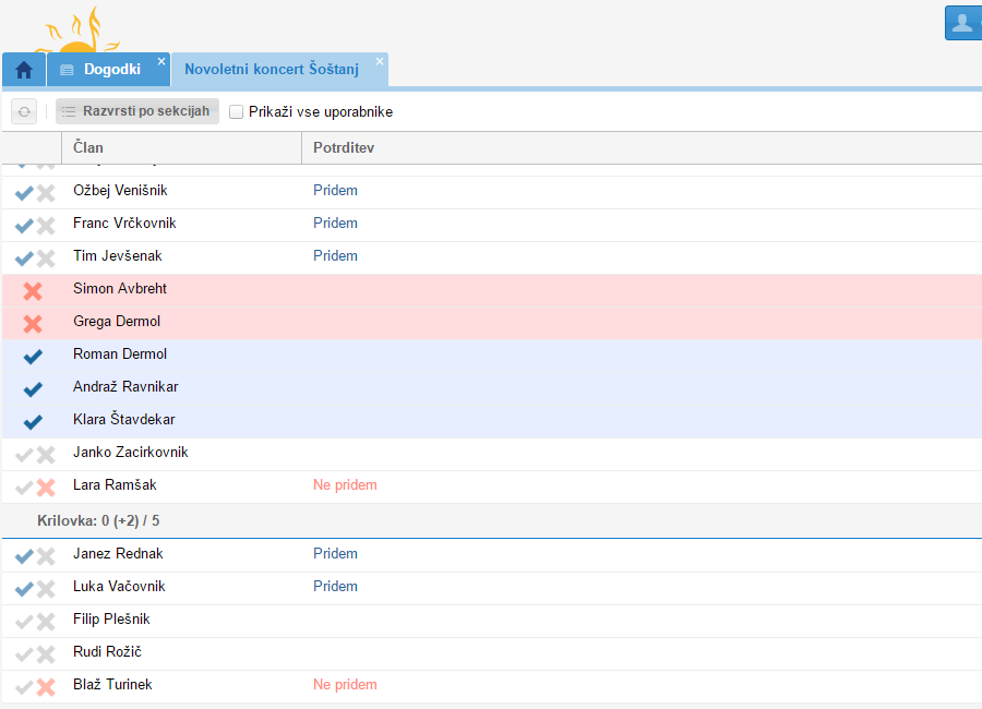 All the administrative tasks are done with GIS Admin - a web SPA admin panel. It supports creation and editing of events, inviting members, verifying event attendance, full user managemet, creation of categories for categorizing users into sub-groups by their instrument type, and more...