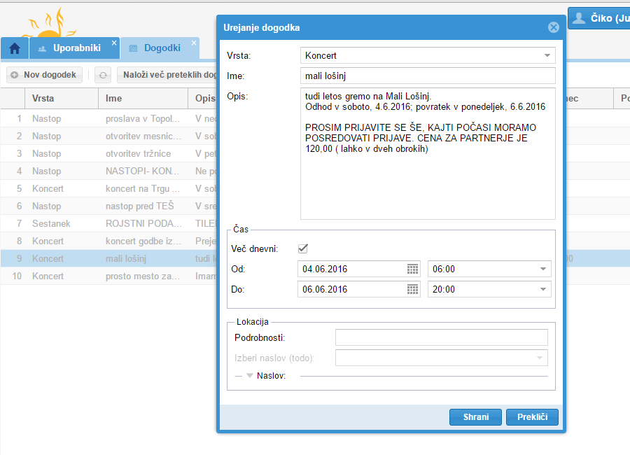 GIS Admin is a part of GIS software system, which enables orchestras and big music groups good comunication. The main functionality of GIS is creating events, inviting members, and then members responding to theese events with confirming or denying attendance, using GIS Mobile App.